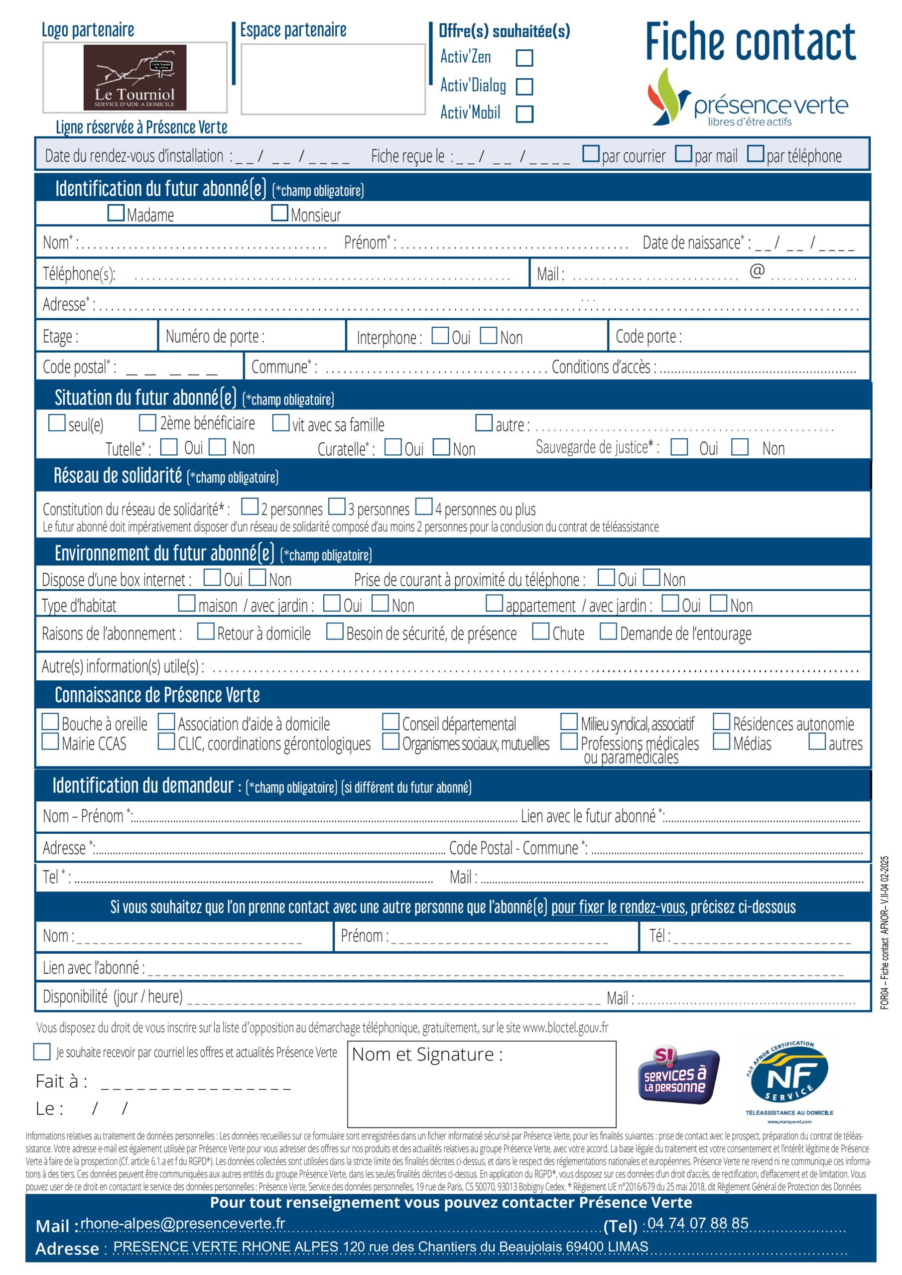 *Offre valable dans le cadre d’une convention de partenariat locale entre Le Tourniol et Présence Verte Rhône-Alpes. Les frais d’installation (valeur 48 € TTC) sont offerts pour toute souscription réalisée dans ce cadre.